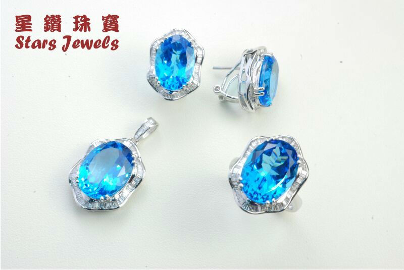 18k gold diamond colour stone Earring,Pendant,Ring set