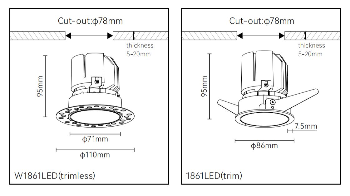 · Separated design of lamp body and mounting parts, convenient maintenance, not easy to damage ceiling.