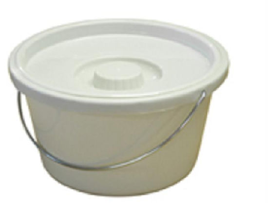 Sturdy, plastic 7.5L commode bucket and lid.