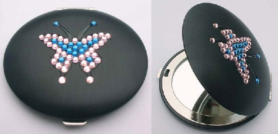 Aluminum compact mirror, decorated by Swarovski crystal stones.