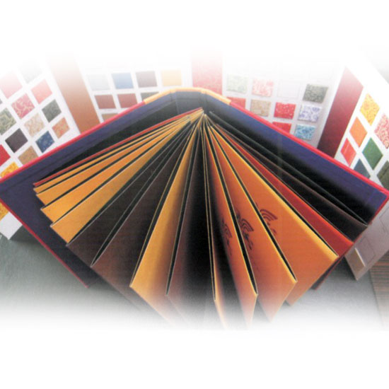 This is a paper company sample book with an elegant design. It features colorful pages and a highly durable cover. This book is made with excellent craftsmanship.