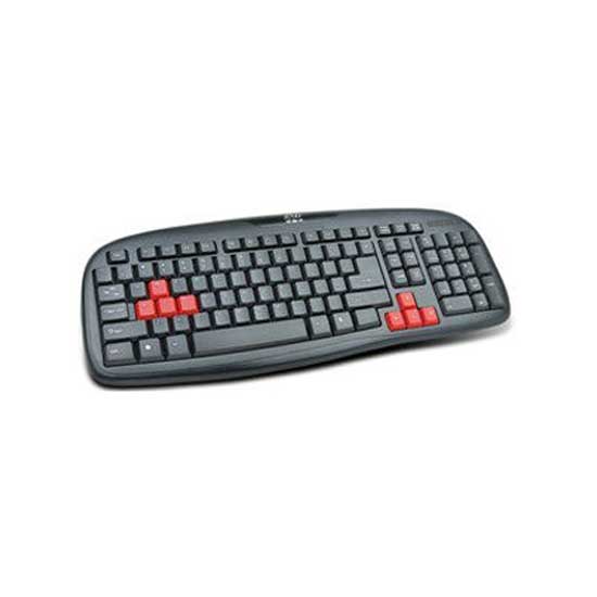 This is a user-friendly computer keyboard with a durable casing. The keys are marked with sharp red for clear observation. The black design matches perfectly with your computer to show a stylish impression.