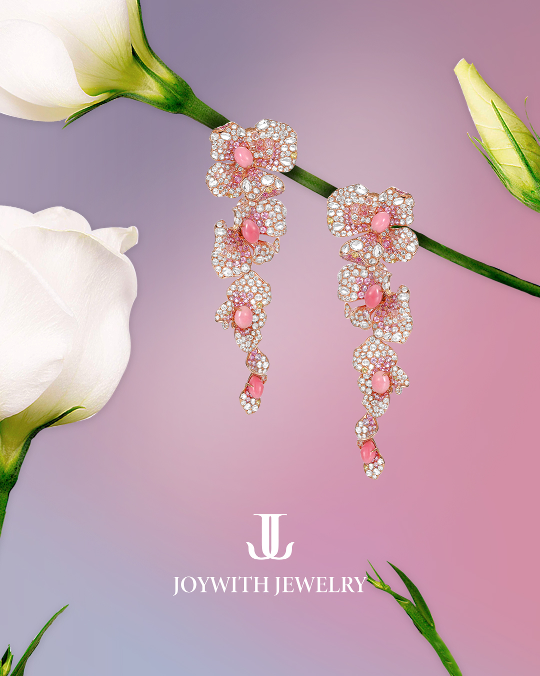The conch pearl earrings are designed to complement the necklace beautifully, echoing the delicate wax-craft technique and the soft, iridescent glow of the conch pearls. Each earring features a series of handcrafted flowers, arranged in a graceful, cascading design. The conch pearls are the focal point, radiating a natural warmth and elegance. Together with the necklace, these earrings create a harmonious set that embodies refined craftsmanship and the beauty of nature, offering a sophisticated and timeless look.