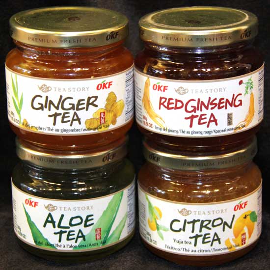 Highlighted is a jar of condensed tea that comes with flavors of ginger, ginseng, aloe and citron. The astringent taste with a hint of spice is refreshing and flavorful. This easy-to-serve condensed tea is healthy and it can improve one's digestion.