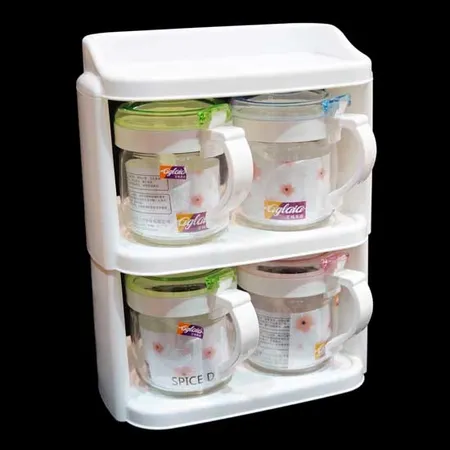 This is a stylish collection of condiment set for storing salt, pepper power, other seasoning etc. Each condiment piece is made with a glass body, a plastic handle and lid. The charming floral print on the cover adds a splash of beauty and elegance to its look.