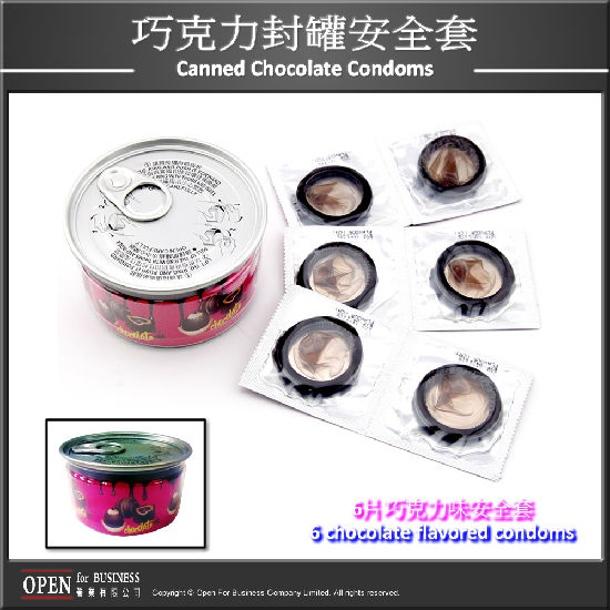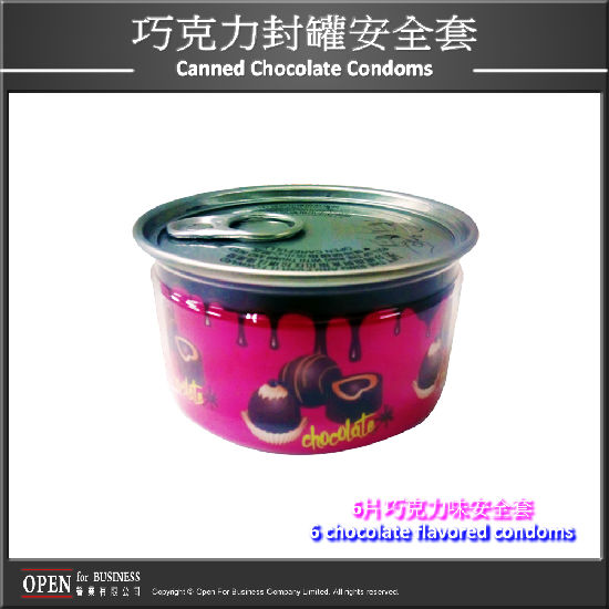 HoneyTime Chocolate Can contains 6 chocolate flavored latex condoms (52+/-2mm) tightly sealed inside a cute chocolate-themed tin can. Chocolate has always been the sweetest gift, but it is now sweeter than ever before!  Are you ready for a sweet romance?
