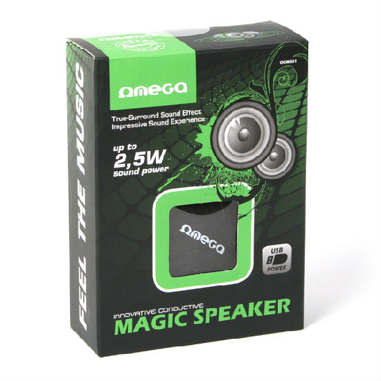 Omega Magic Speaker consists of the speaker and the conductor. In the set you will also find power USB cable and audio in cable with mini jack 3,5mm plug. It has enough sound power (up to 2,5W) to share your music with your friends.