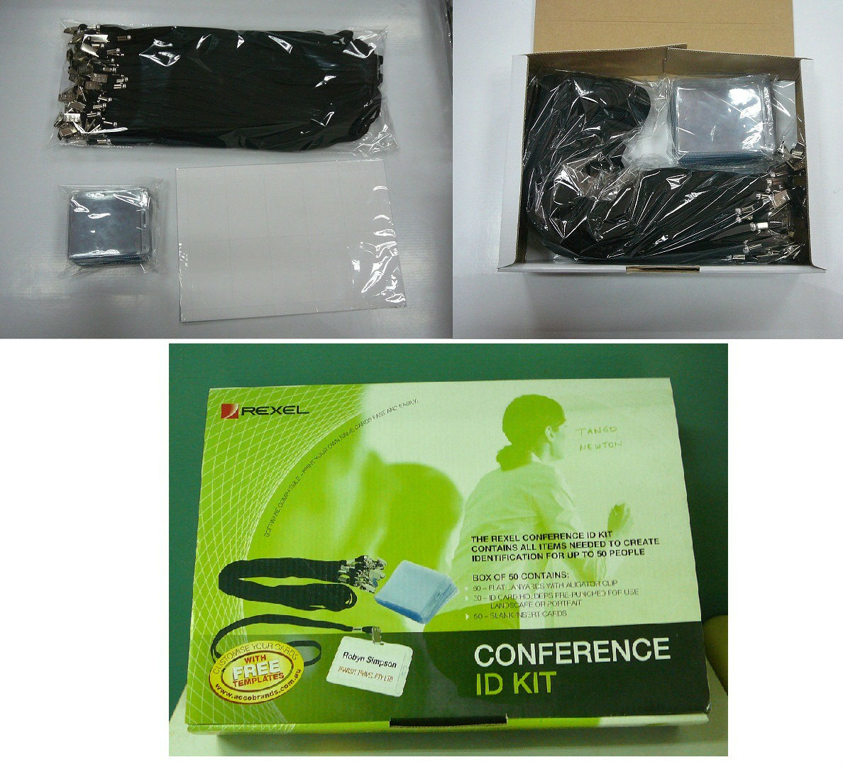 Boc of 60 contains:60-Flat lanyard with aligatpr clip 60-ID card holders pre-punched for use landscape or portrait 50-blank insert cards