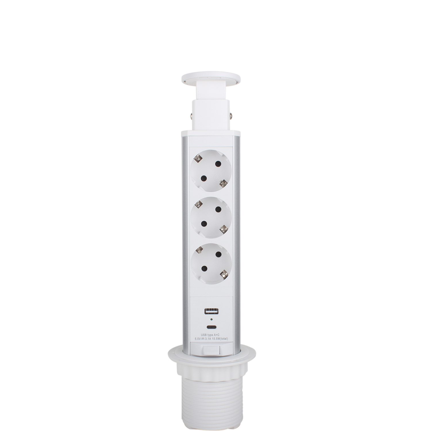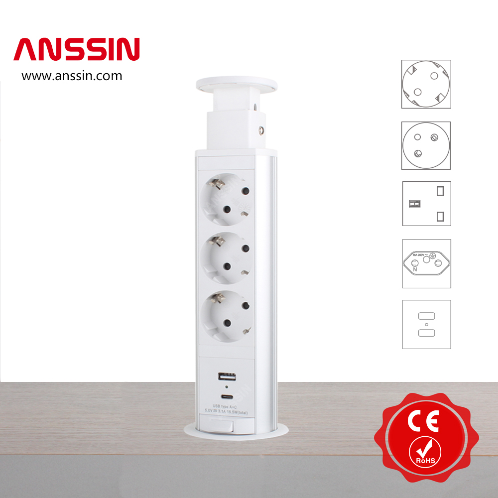 Conference table pop up socket white color is your all-in-one solution for powering your devices with ease and efficiency. Designed to accommodate various international standards, this desktop socket is perfect for any setting , offering convenience and saving valuable desk space.