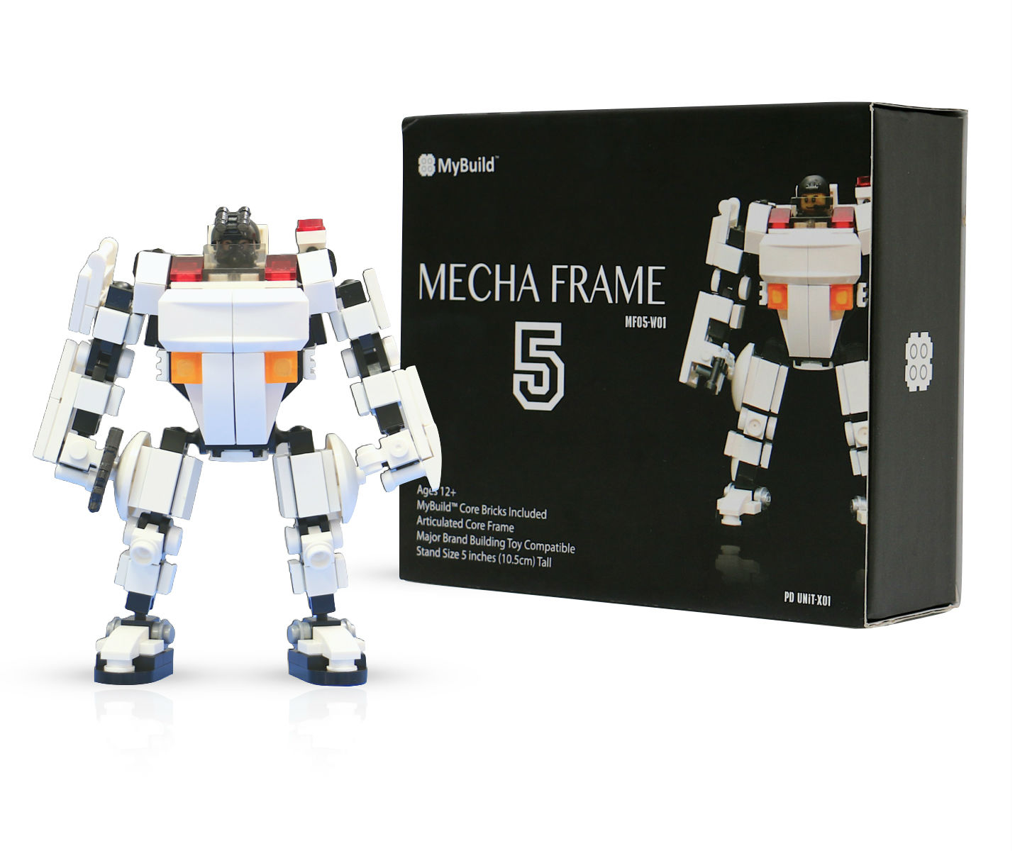 Highlighted here is construction toy set for kids. The construction toy set can be used to build a cool robot with white armor. The finished robot has movable joints and can stand and make poses.