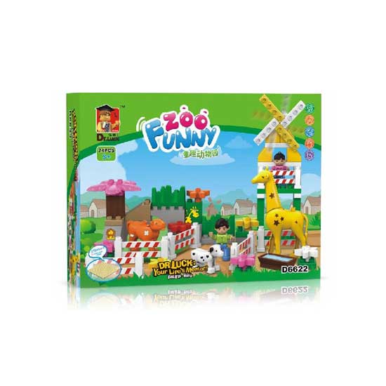 This construction toy comes with 74 blocks. It is designed for children to build a funny zoo with themselves. This construction toy surely is a great choice for enhancing your kids' practical ability.