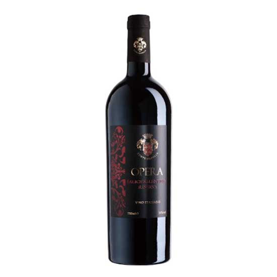 This bottle of Opera Conte D'Apulia adopts selected Negroamaro and Malvasia Nera grapes. It is fermented in barrels for 6 months and then in bottles for more than 4 months. This tasty Italian red wine goes great with various dishes.