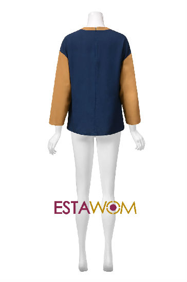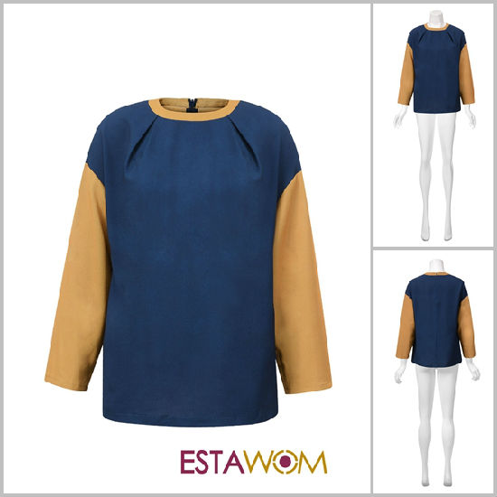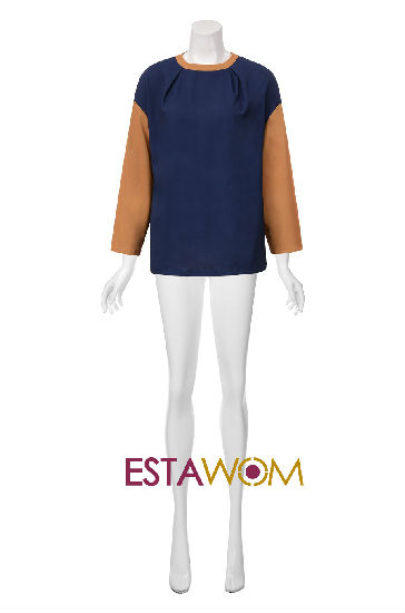 Pleated round neck tunic with two contrasted dropped sleeves gives you a sense of casual ease. Clean line and good match with a pencil skirts or tapered pants.