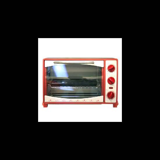 This convection oven uses 4 stainless steel heating element and a power on indicator