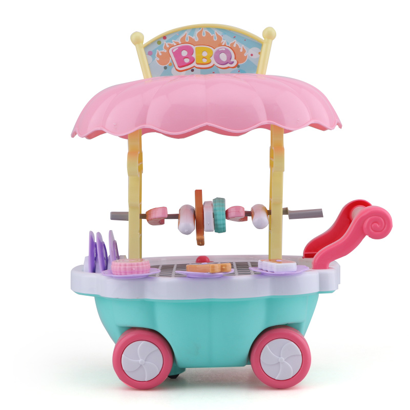 Newest Pretend Play Kitchen Toys Cooking Food Barbecue Cart Plastic Kitchen Play Set Toys For Kids