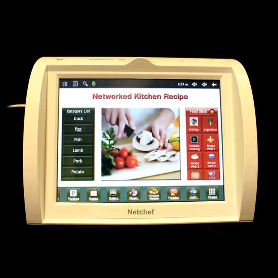 This is a tablet PC specially designed with multiple built-in recipes to aid your cooking. It comes with a large screen that can show the detailed cooking steps with attractive pictures. This novel cooking tablet PC also has Wi-Fi and music functions.