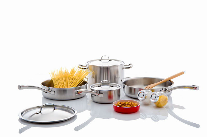 This cookware set include 4 different size products, the set can handle almost anything including sauce, soup, vegetables, and pasta. Featured with an impact-bonded base, these stainless steel pots distribute heat evenly and efficiently whether you cook with gas electricity.