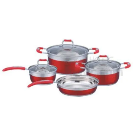 Cookware Set in 7 Pieces, Color Painting Exterior, Riveted Silicone Handles, Thick Aluminum Core for Good Heat Distribution, Induction Base