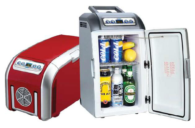 • Stylish shape and highly versatile, standing as a home fridge, lying as a stylish car cooler, 2 liters bottle can stand upright, use fan cooling system, with 2 segment height adjustable puller and wheels, LCD display and function selection keys, easy to use and carry.