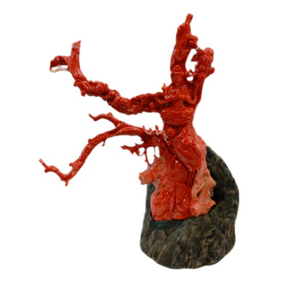 The coral carving shows the appearance of the flying four-armed Goddess of Mercy. It is exquisitely crafted with excellent workmanship and amazing details. This gorgeous coral carving makes a stunning gift or home decoration.