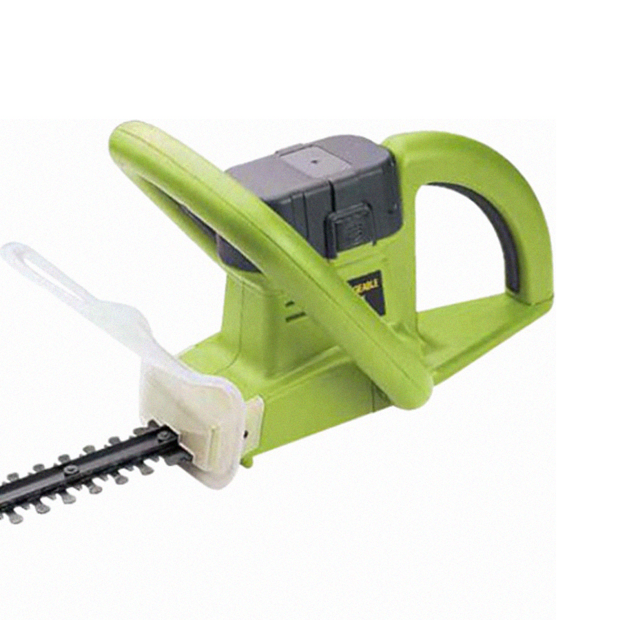 This cordless hedge trimmer is equipped with cutting blade made of high-grade metal.