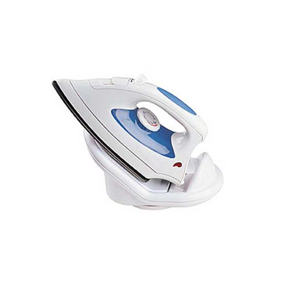 Shown here is an iron with a cordless design. It features a rubber handle for a comfortable grip. This cordless iron is an ideal choice for households and hotels.