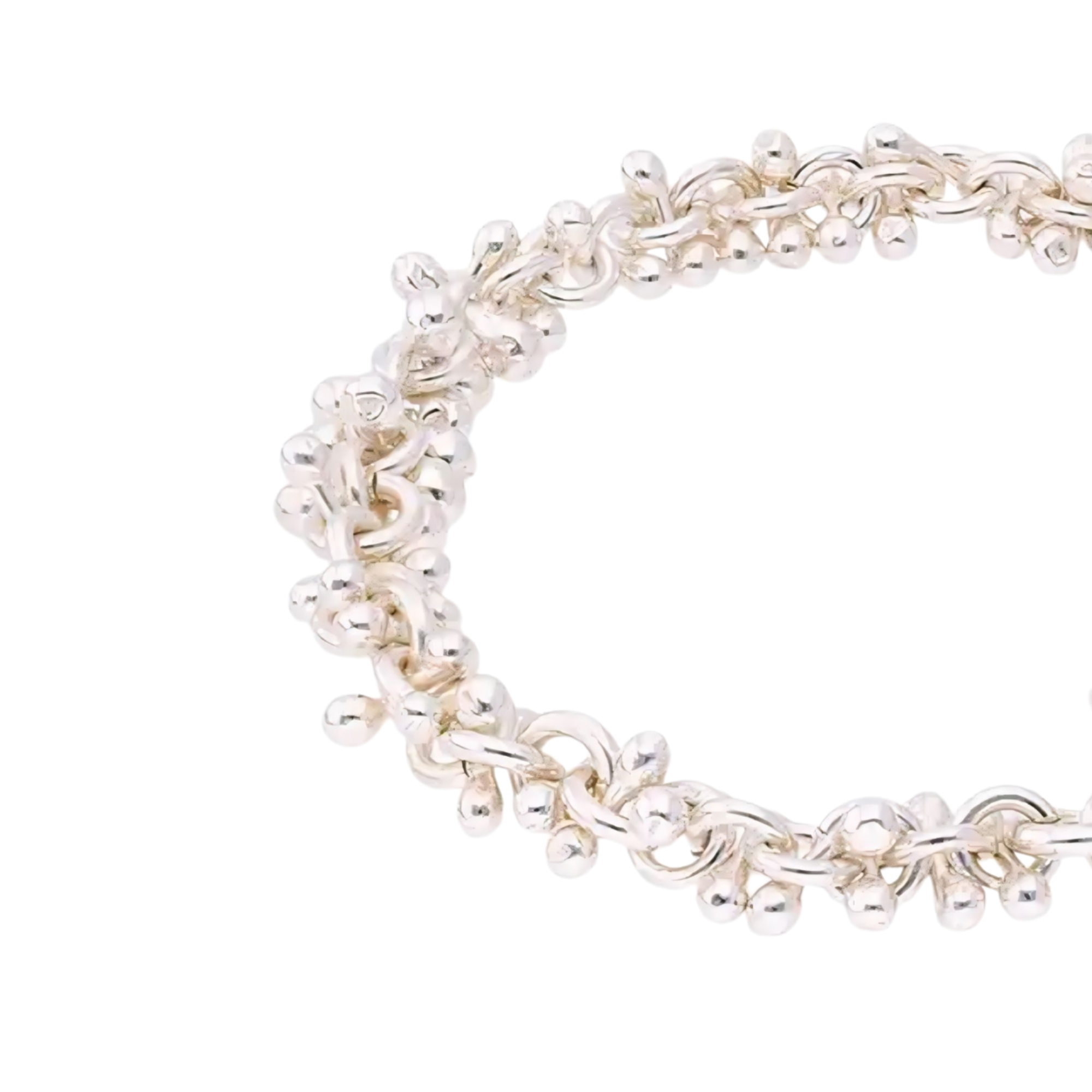 Discover the universe on your wrist with a silver bracelet that wraps you in a cloak of elegance and mystery. Each link is a small world intertwined to form a harmonious whole, reflecting the beauty of the connection between the inside and the outside. The unique design of spheres and chains creates a depth and texture effect that will make you feel like the center of the universe. It’s more than a piece of jewelry; it’s an expression of your essence and style.