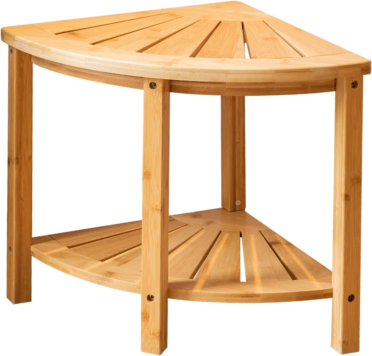 Made of premium quality natural, this bamboo corner shower stool is eco-friendly, strong and durable, round corner and well-sanded edge for safer use.