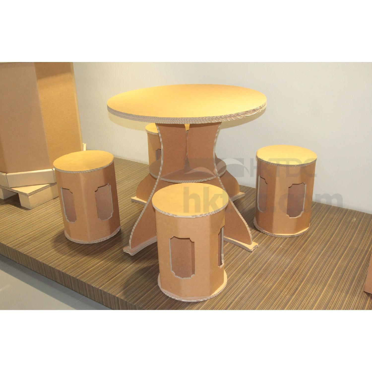 Ultra-lightweight yet sturdier beyond your expectation, this solid furniture set comes with a reliable corrugated paper construction for various practical applications. This set consists of a round table and 4 matching chairs, coming completed in a natural finish that allows endless possibilities of unique designs.