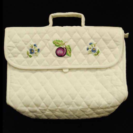 Showcased is an ornate cosmetic bag that boasts a classical design. This fine cosmetic bag is embellished by embroidered details. Store your cosmetic supplies in style with this excellent cosmetic bag.