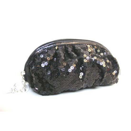 The cosmetic bag features a zipper closure with a charm puller. The sequin decoration gives the bag a unique touch. This cosmetic bag comes in just the right size to store all your make-up tools.