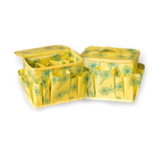 This cosmetic bag features external pockets for extra storage. It is patterned with floral motifs all over for style. This piece is also available in 2 different colors.