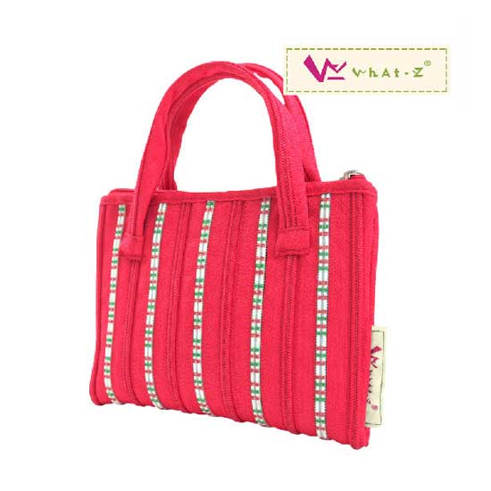 This eye-catching red cosmetic bag with checker details adopts zippers to complete the stylish and cute look. The notebook sized design allows it to be put in a big bag easily. This compact cosmetic bag is finished with two handles for users’ convenience.