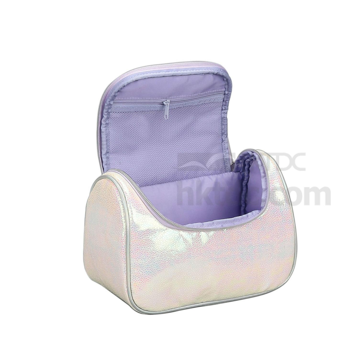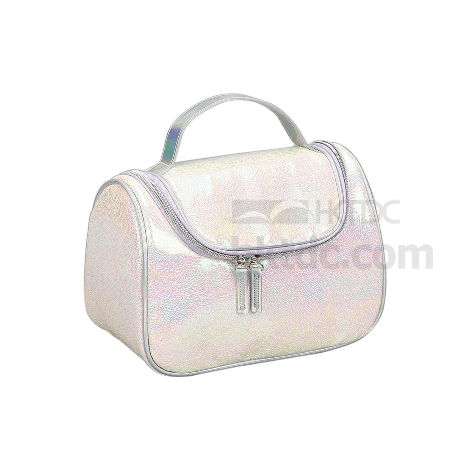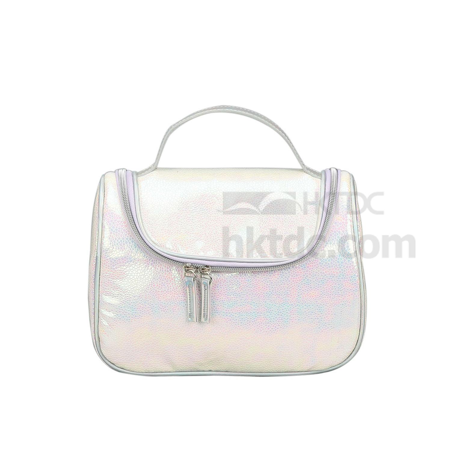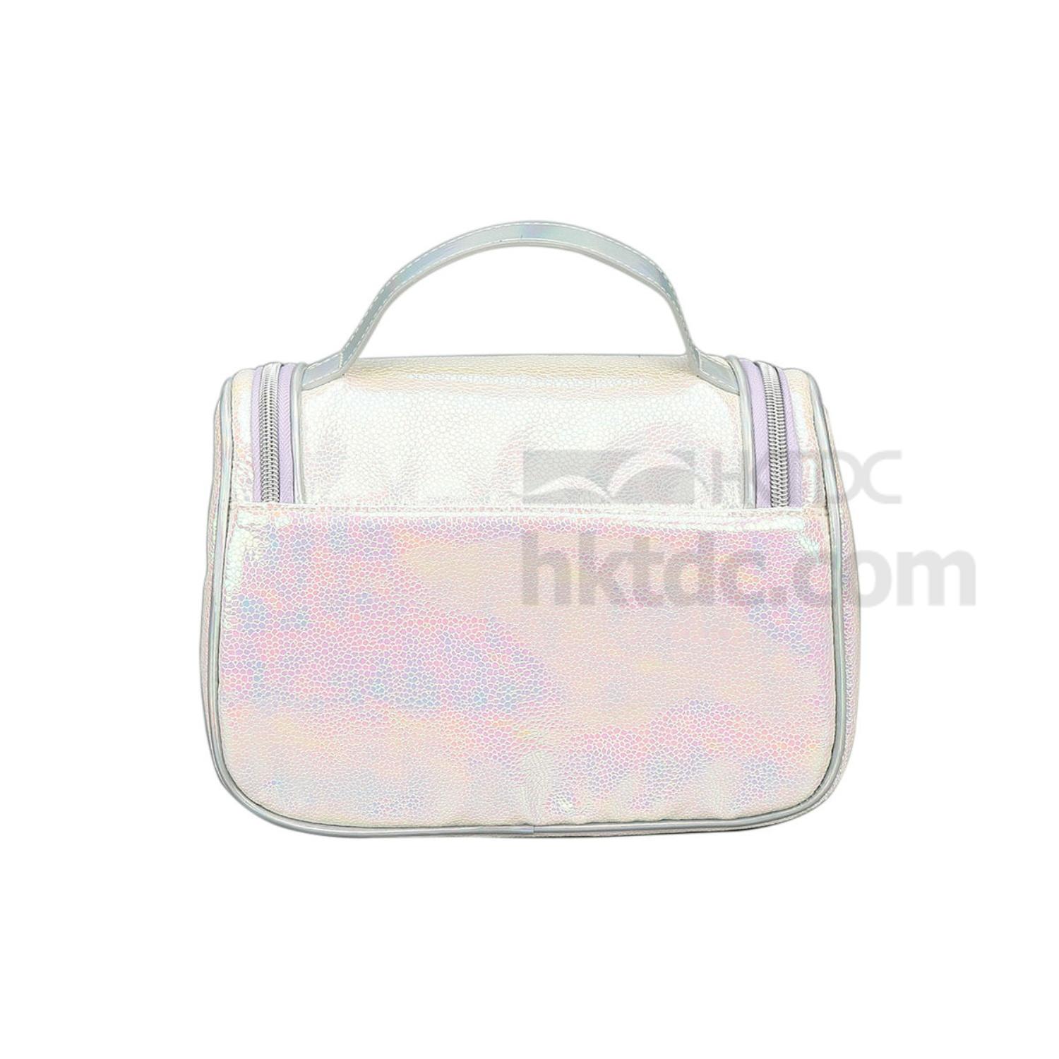 Well structured in a boxy silhouette, this cosmetic bag is large enough to stow your makeup essentials. It features a two-way U-shaped zipper that fully reveals its contents when unzipped. Boasting a PU leather exterior in ever-changing metallic pink and white shades, the bag is both stylish and practical for business trips, travels, and weekend getaways.