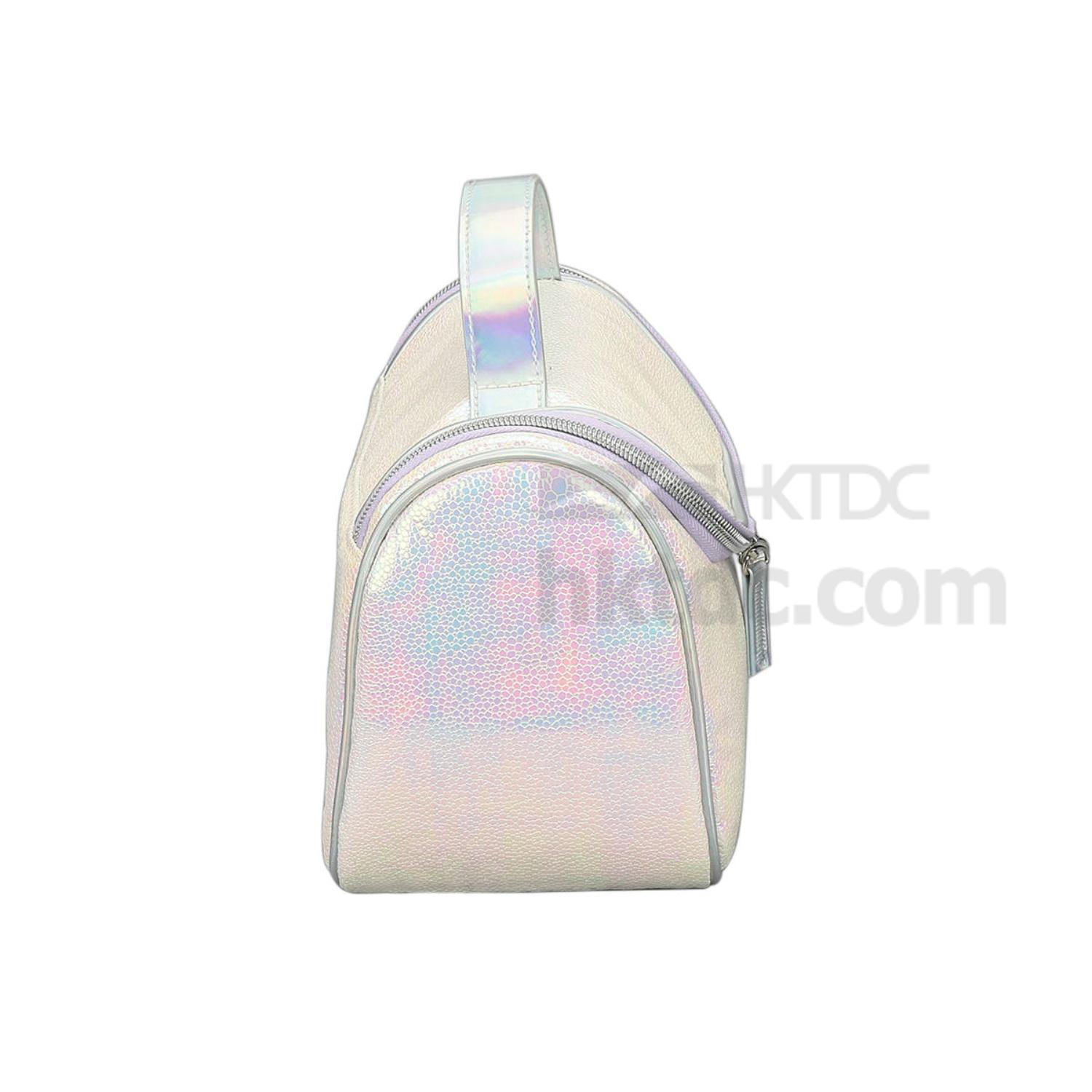 • Shiny metallic PU body shell in pink and white shades.