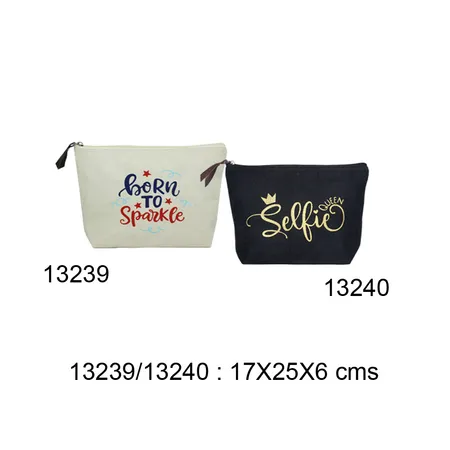 13240 - 10 Ozs Black Cotton cosmetic pouch with Zip and Runner