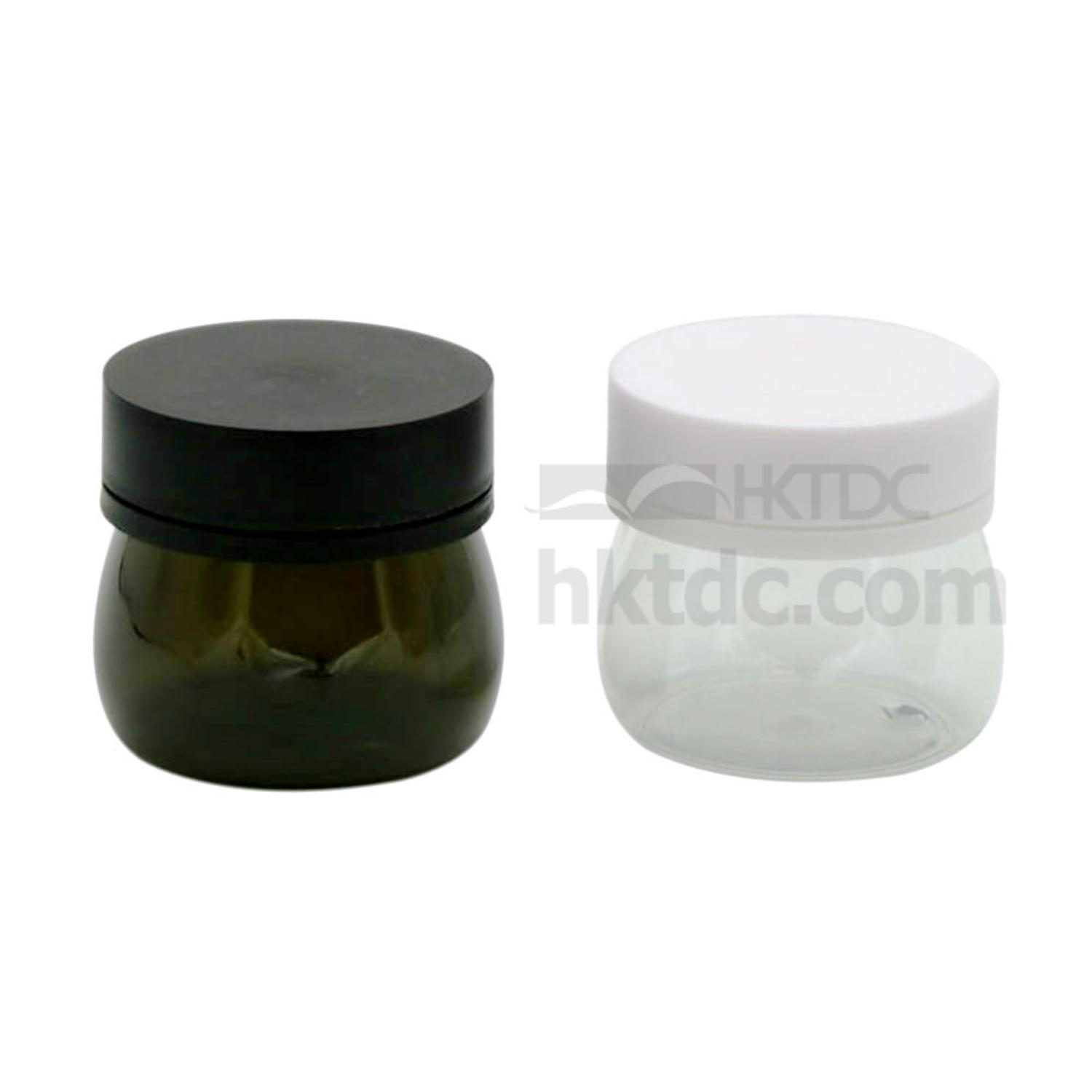 Set-Cosmetic Jar, Tranpsarent, cylindrical, Plastic cap double wall,