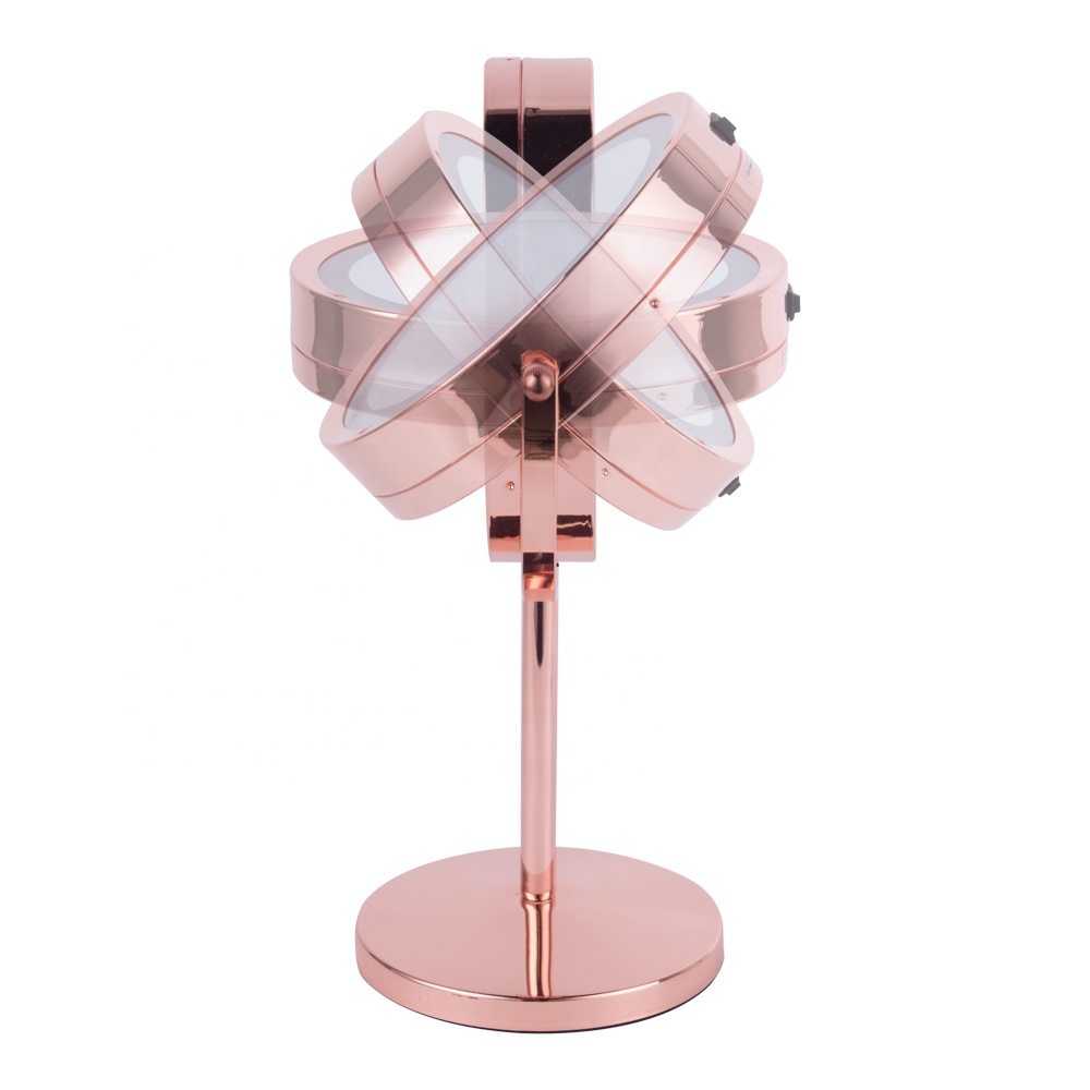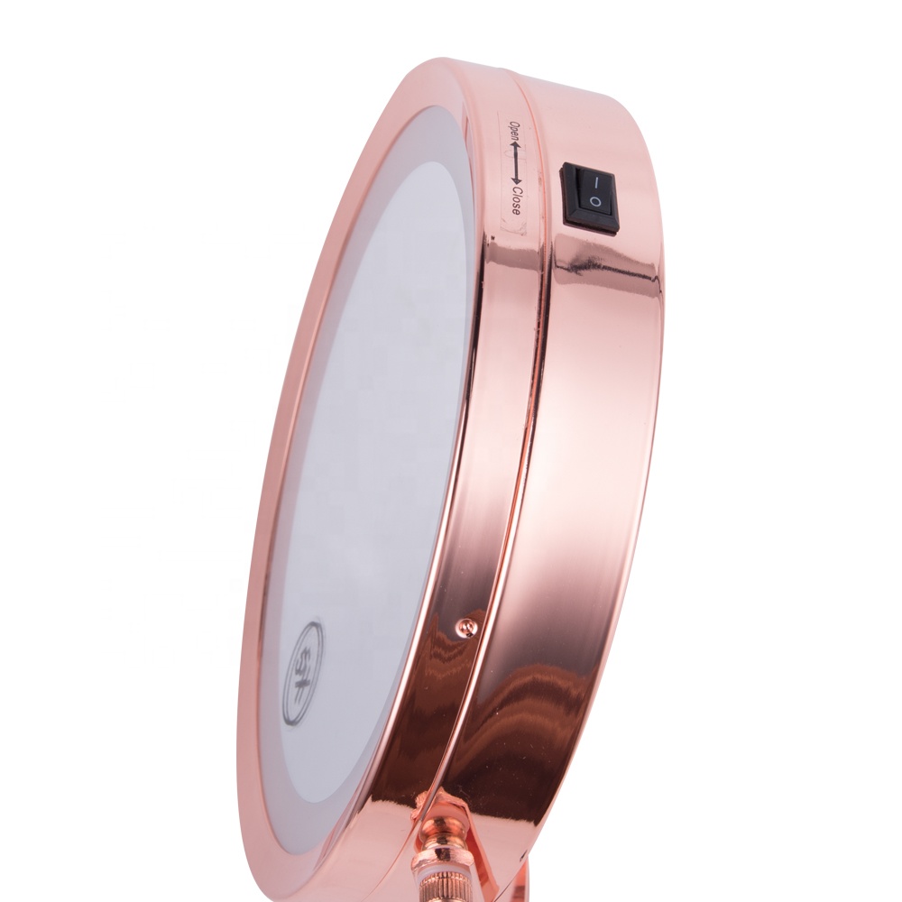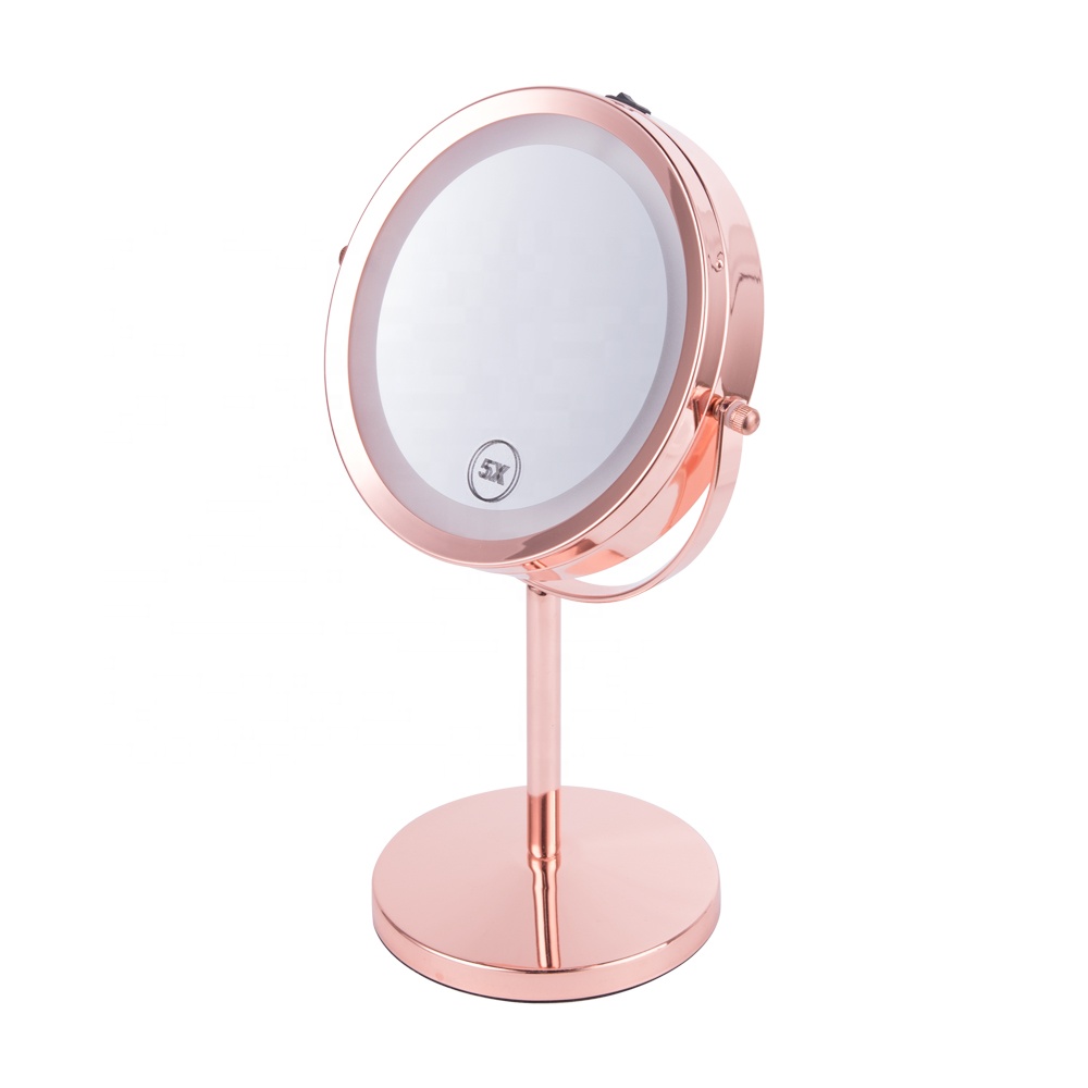 Rose gold Double Sides Vanity Led Lighted Tabletop Metal Portable Magnifying Makeup Mirror