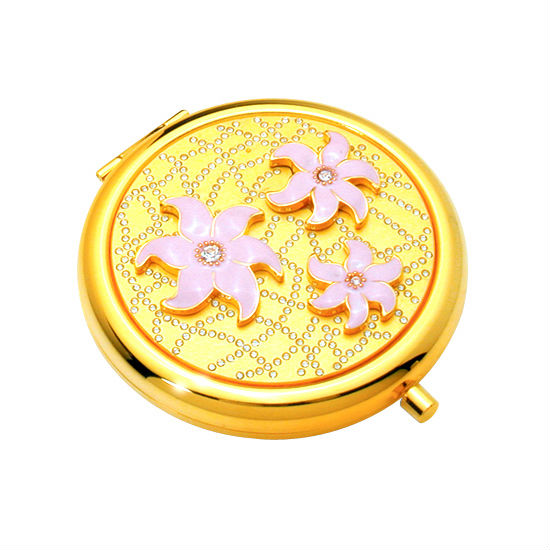 Shiny Gold Plated with white crystals and flower pattern in pink color