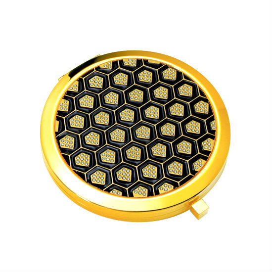 Shiny Gold Plated with white crystals and epoxy in black color (honeycone pattern)