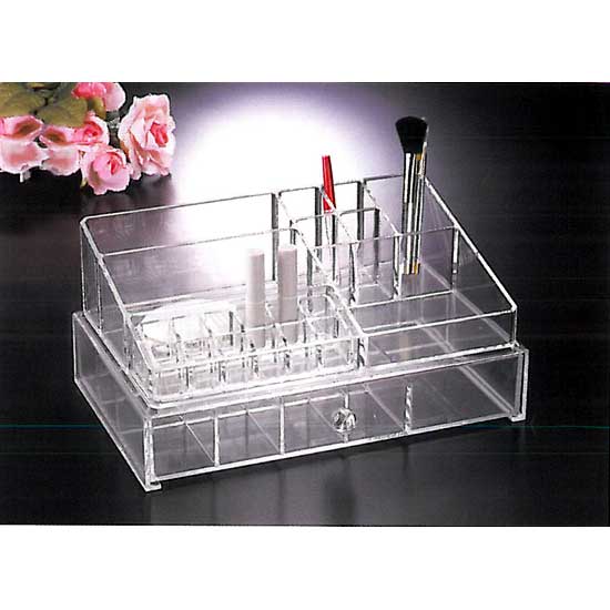 This sophisticated cosmetic organizer features a beautiful transparent design, giving you a clear view of all your beauty items. It comes with a pull-out drawer with 6 compartments, as well as 12 compartments for lipsticks and 8 compartments for holding other makeup tools. Keep your cosmetics and makeup tools organized with this deluxe cosmetic organizer.
