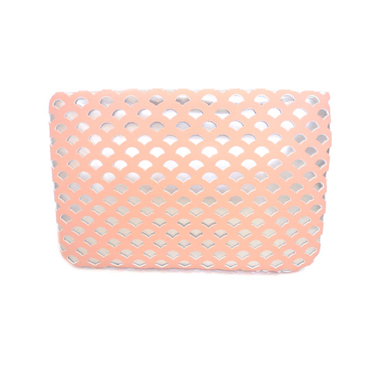 This is a rectangular-shaped cosmetic pouch with a fashionable design. It is made of quality PU for a long service life. This cosmetic pouch offers a stylish way to organize your cosmetics and cosmetic tools.
