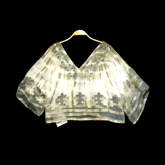 This is a ladies’ short blouse with a stylish and unique design. It is made of quality cotton for a comfortable touch. This cotton blouse is designed with V-necklines on both sides for a fashionable look.