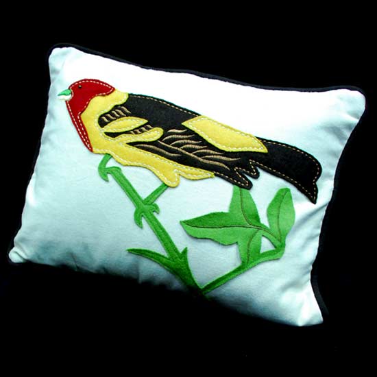 This cotton cushion is rectangular in shape. The panel is adorned with a graceful bird made up of delicately stitched patches, offering a modern style. It makes an embellishing household furnishing item.