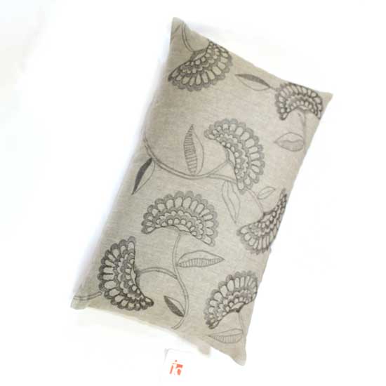 Displayed here is a decoration cushion with a rectangular shaped design. The floral details present an elegant accent. This pure cotton cushion is very comfy to cuddle.