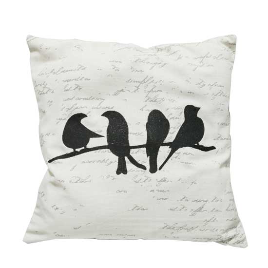 The pictured cushion in white is fabricated from cotton for extra coziness. The bird printings in black and the gray letters highlight the look effortlessly. This fashionable cotton cushion is ideal for home use.