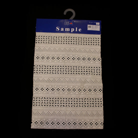 This is a cotton fabric with a soft texture. It comes in white vivid hollow patterns. This fabric is a great choice for making assorted textile products.