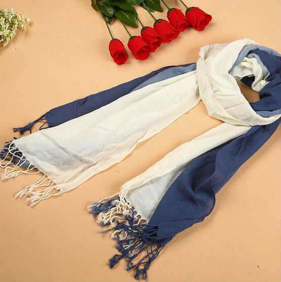 1. Cotton linen scarf displayed is made of cotton and linen, 1 color embroidery design with cotton thread and polyester yarn, subtle fringes.