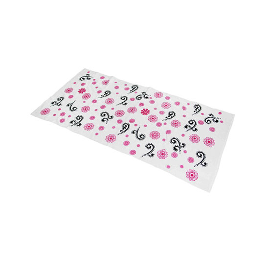 This cotton velour towel is printed with intricate patterns in red and black. Made of 100% cotton, this towel is luxuriously soft and highly stretchy. Provide a surface to lie on at the beach with this comfortable yet stylish printed towel.