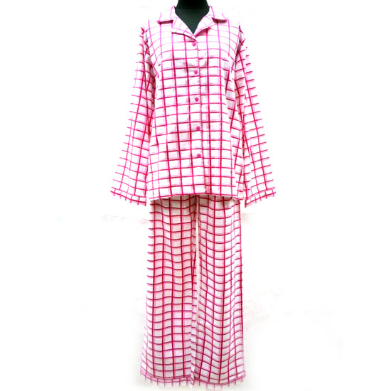 This pictured set of pyjamas is made from woven flannel. The long-sleeve design makes the set ideal for the winter nights. The red and white checked patterns bring this set a retro sweet style.